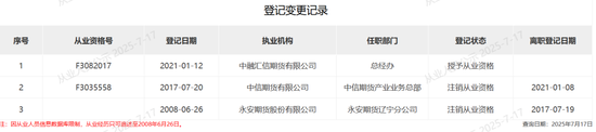 虽然中融汇信期货在中期协公开的董监高履历,均为“空白”,但从登记执业信息来看,副总经理屠江早年任职于永安期货辽宁分公司;2017年7月至2021年1月登记执业于中信期货产业业务总部;2021年1月登记执业于中融汇信期货总经办。